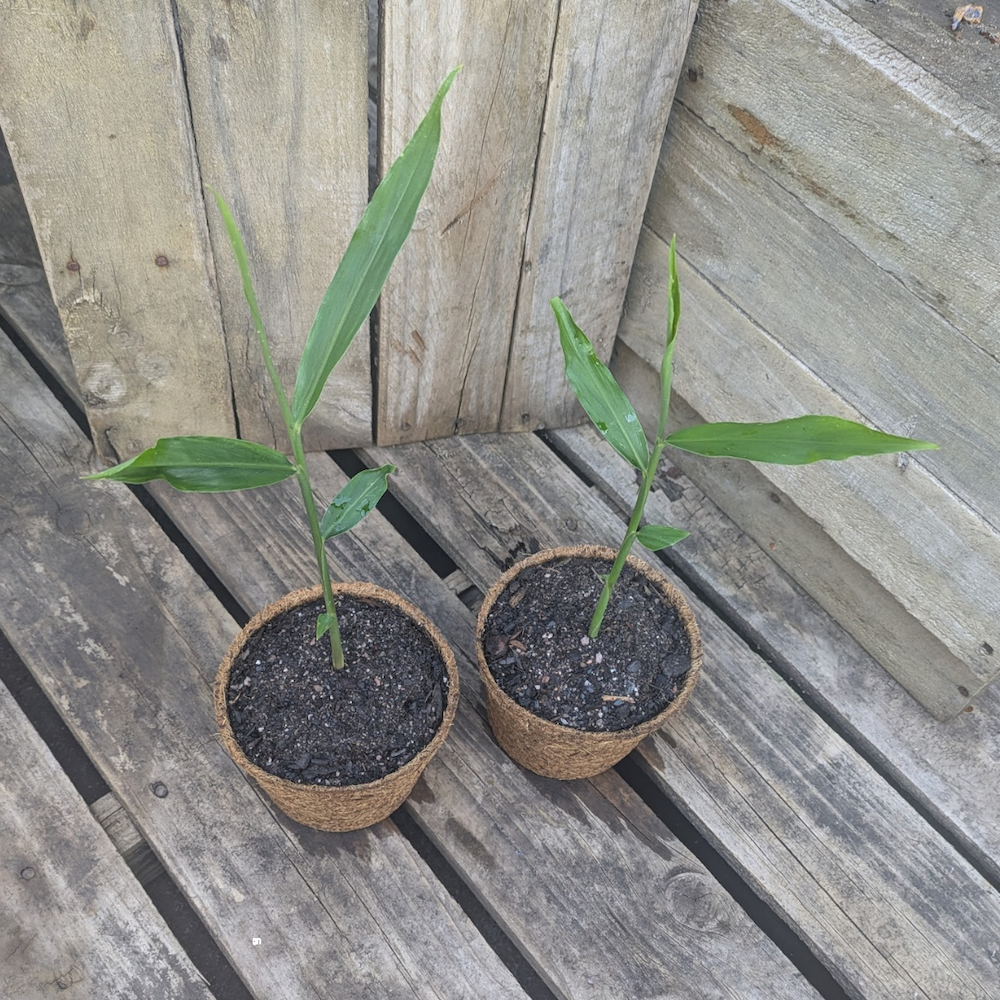 Zingiber officinale. 1.1L coir pot.
