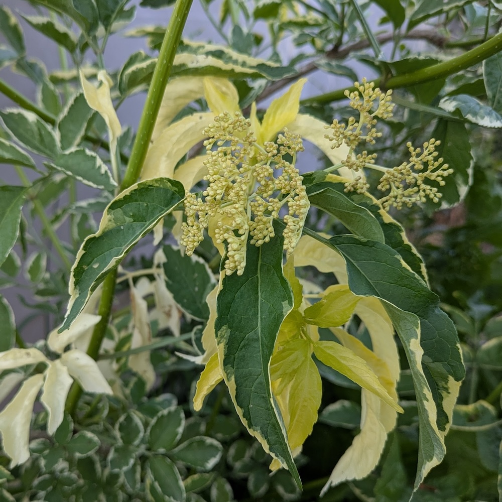 Sambucus nigra ‘albo-variegata’. 1.1L coir pot.